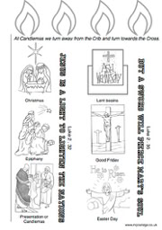 A "colour in" sheet for The Presentation of Christ in the Temple linking Christmas/Epiphany to Lent/Easter.