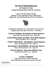 Order of Service for a new memorial